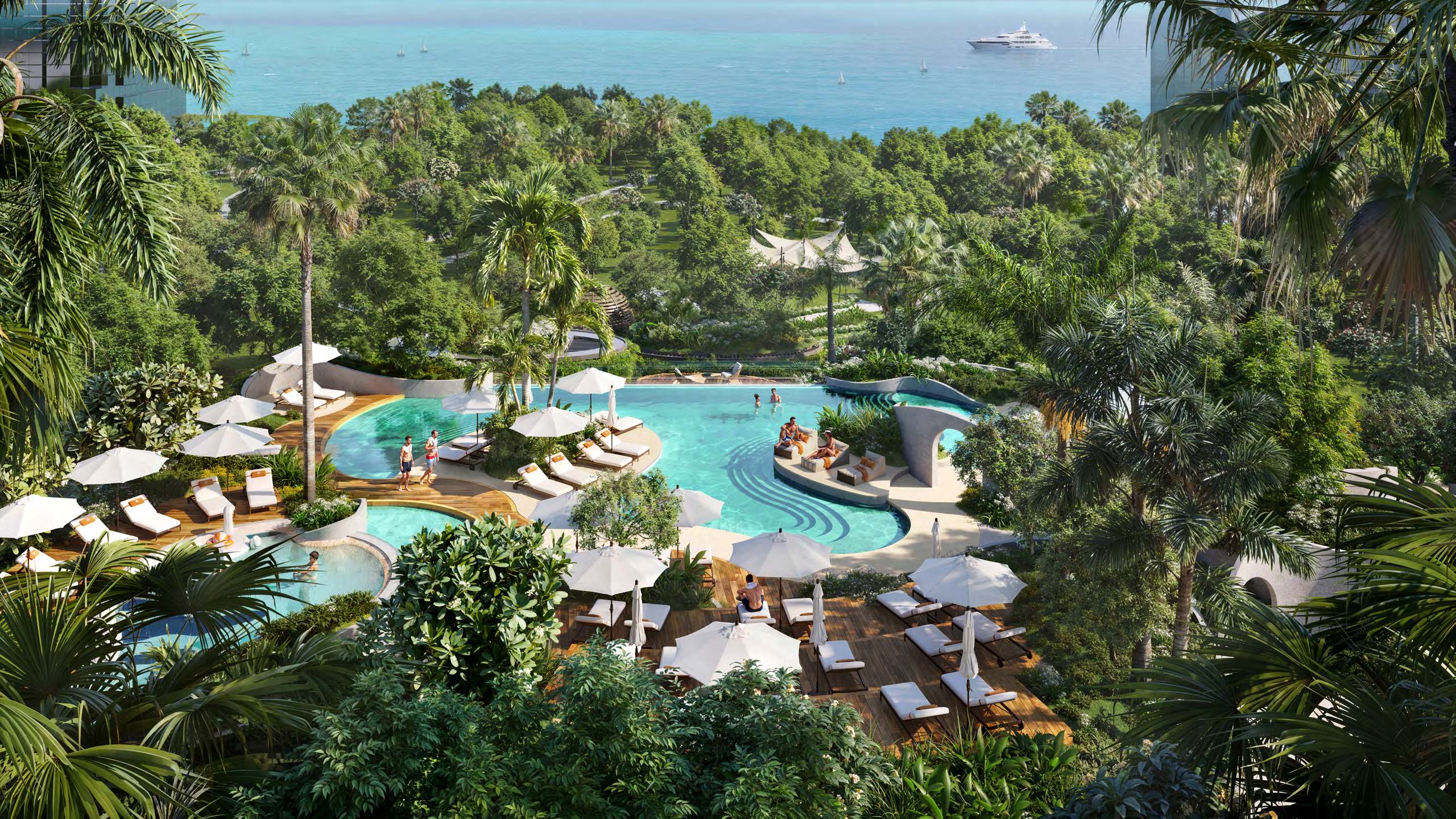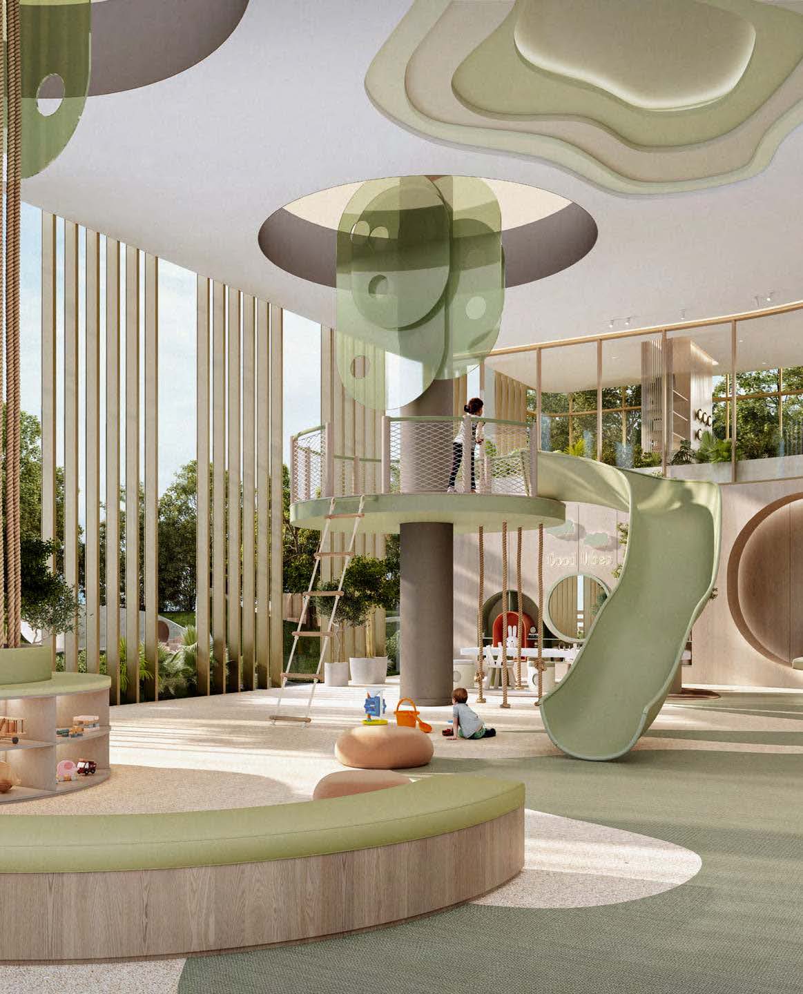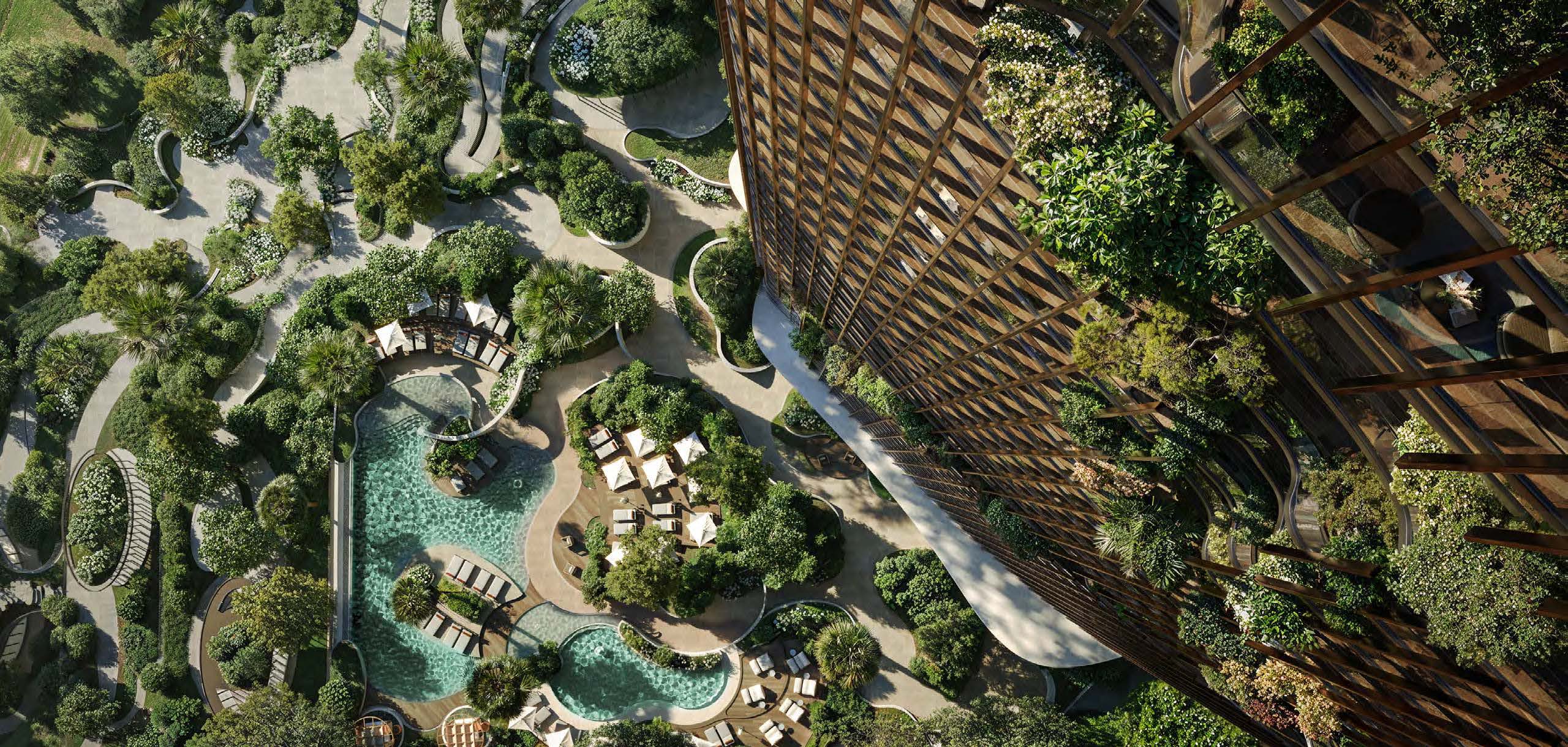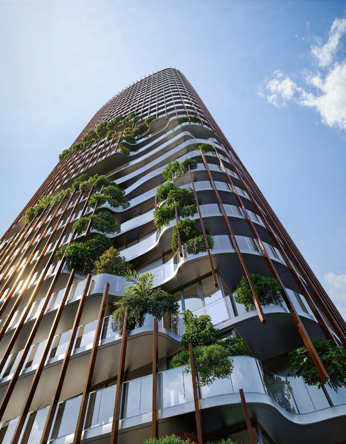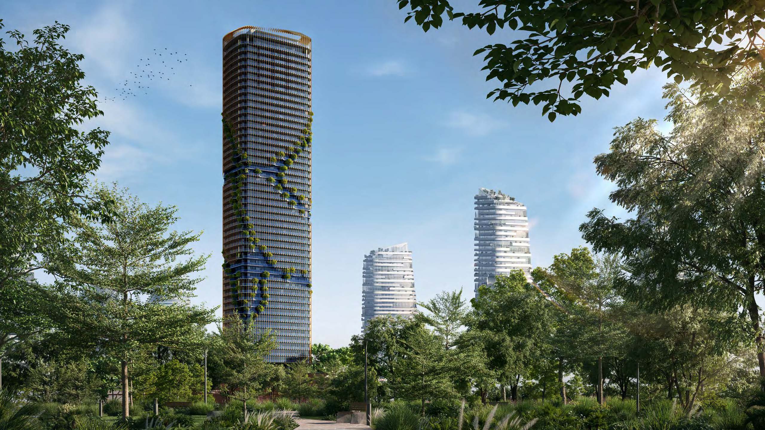 Luxuriöse Amenities wie eine moderne Lobby, Rooftop-Infinity-Pool, High-End-Gym, Co-Working-Bereiche und grüne Rückzugsflächen runden das Angebot ab.