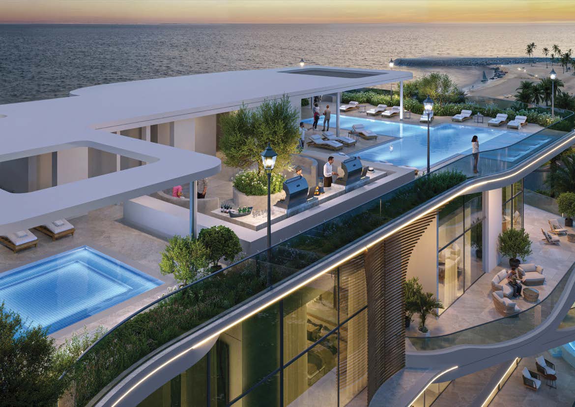 Die Apartments und Penthouses überzeugen durch große Terrassen, hochwertige Materialien und beeindruckende Meerblicke. Ergänzt wird das Projekt durch Premium-Amenities wie Rooftop-Infinity-Pool, Spa- und Wellnessbereiche, Gym, Outdoor-Cinema, Jacuzzi und exklusive Community-Zonen.