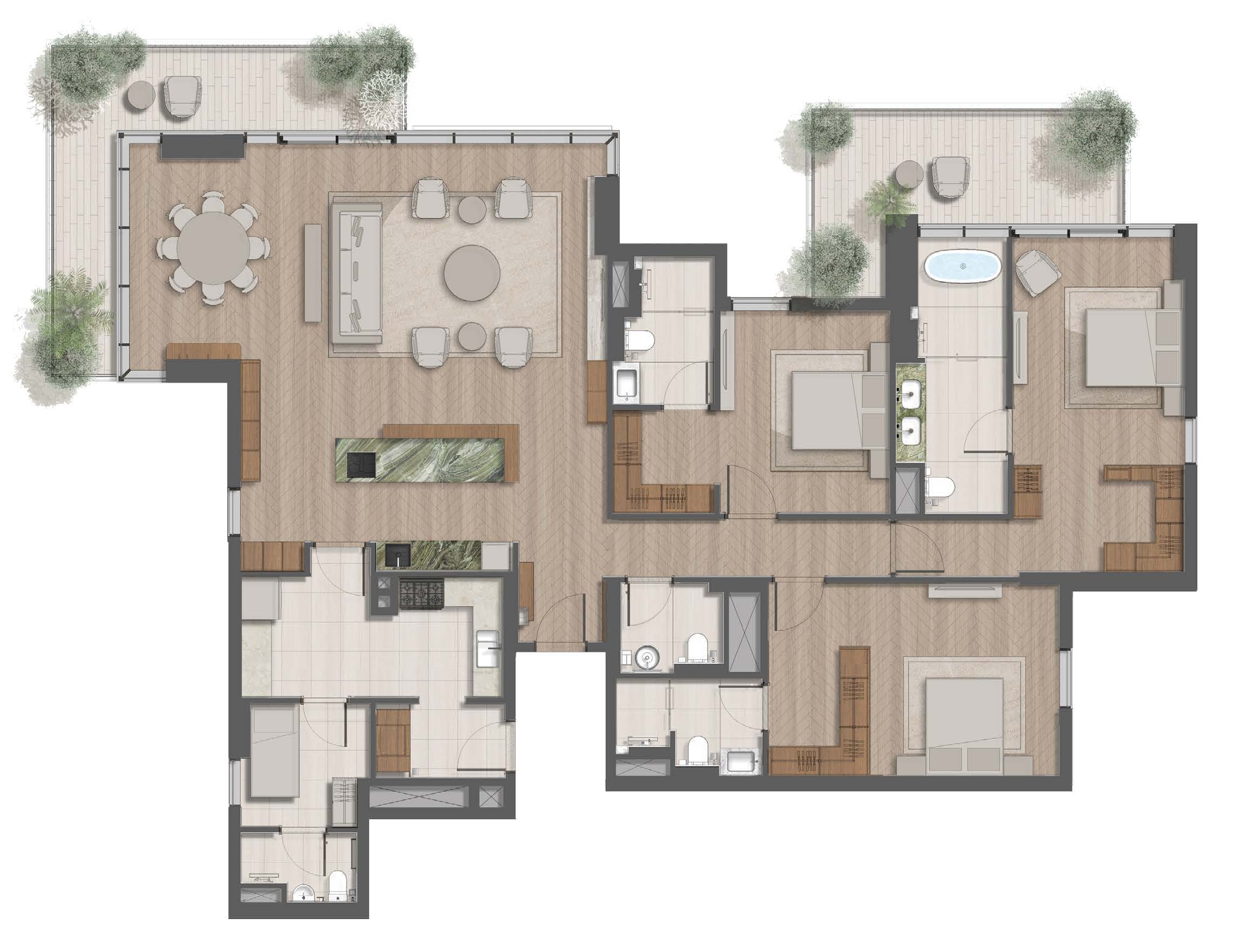 Highlight des Projekts ist das einzigartige Wellness-Konzept: ein „Forest-Edge Pool“, Jogging- und Naturpfade, Luftqualitäts-Technologien sowie nachhaltige Bauweise setzen neue Maßstäbe im Premium-Segment. Die Lage überzeugt durch schnelle Anbindung an Downtown Dubai, den Flughafen und wichtige Business-Hubs.
