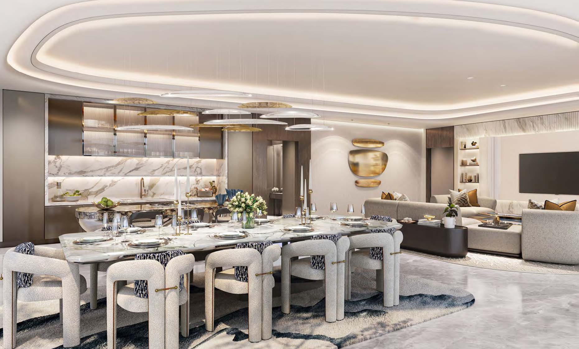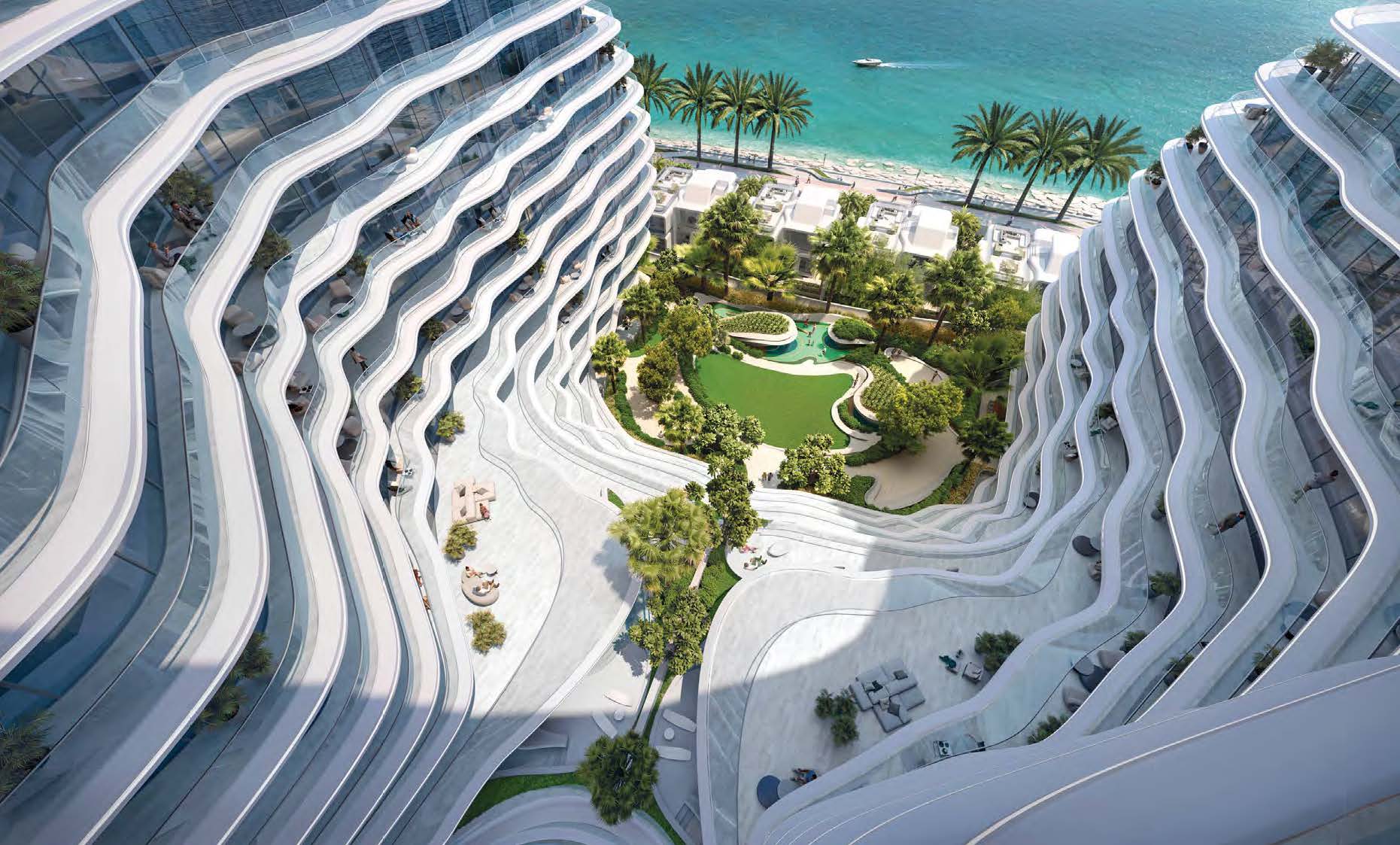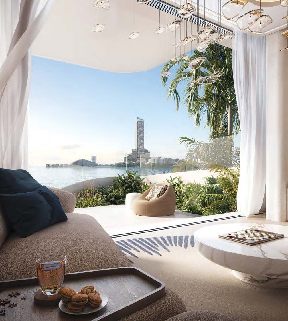 Das Projekt bietet hochwertige Apartments, Duplex Einheiten, Penthouses und ausgewählte Waterfront Residences mit großzügigen Grundrissen, bodentiefen Fenstern und spektakulärem Meerblick. Hochwertige Materialien, fließende Formen und ein klares Premium Konzept prägen das gesamte Ensemble.