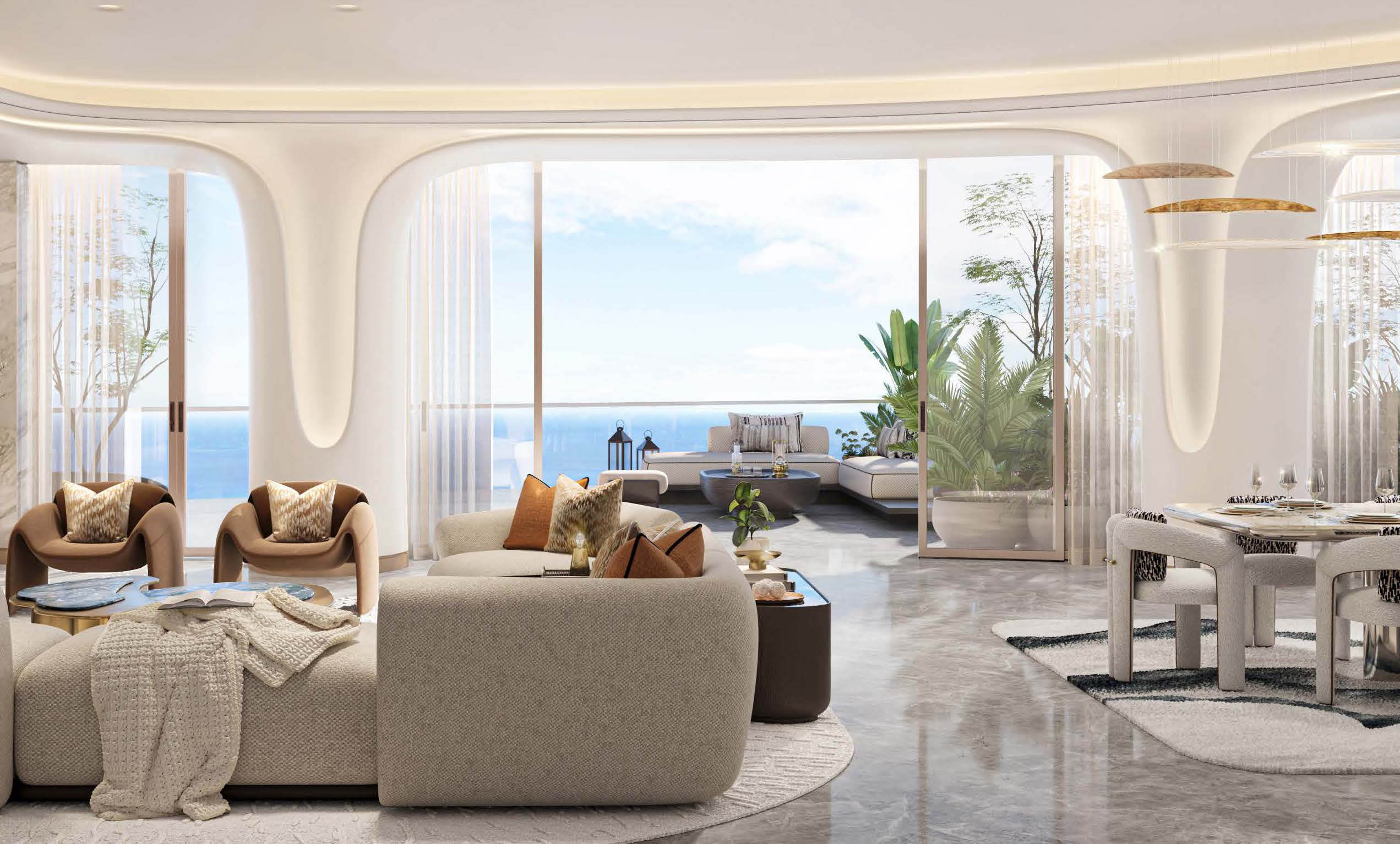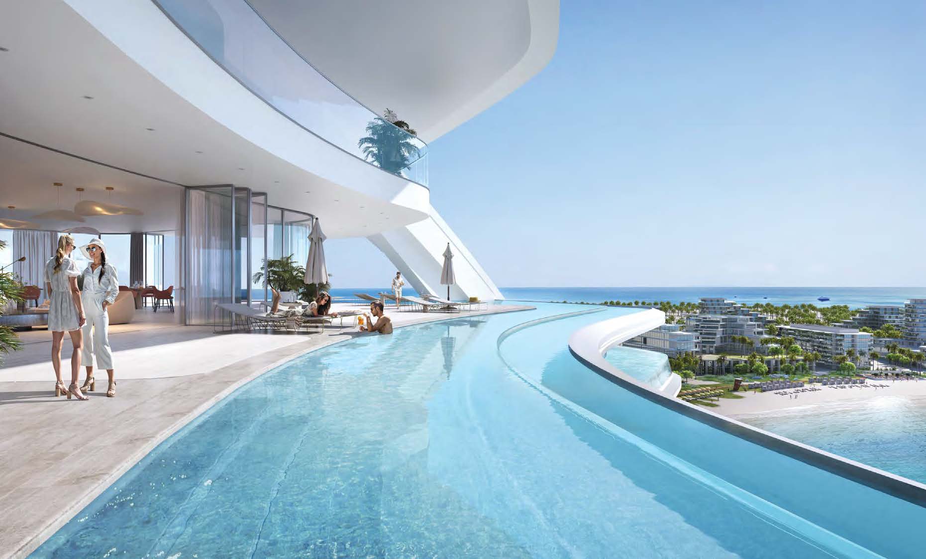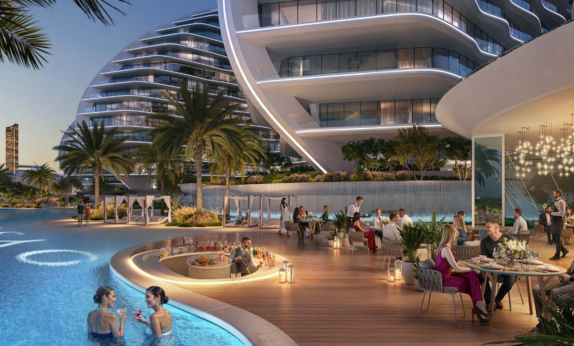 Das Projekt bietet hochwertige Apartments, Duplex Einheiten, Penthouses und ausgewählte Waterfront Residences mit großzügigen Grundrissen, bodentiefen Fenstern und spektakulärem Meerblick. Hochwertige Materialien, fließende Formen und ein klares Premium Konzept prägen das gesamte Ensemble.